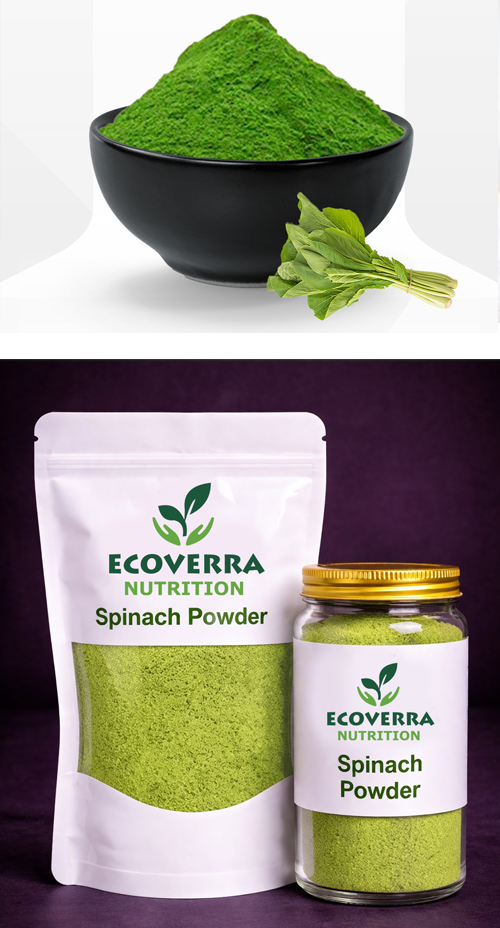 Fresh spinach leaves are cleaned and gently dried to preserve colour and nutrients. The dried leaves are milled into a fine powder to ensure uniformity and easy blending.
